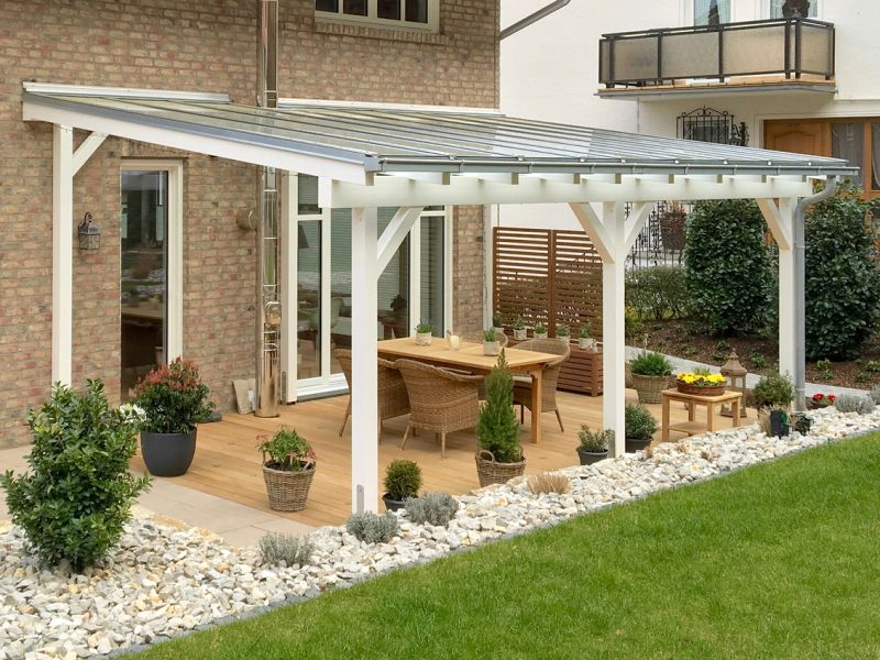 Unsere Auswahl an Varianten für Ihr Terrassendach ist riesig – ob in Stil, Holzart, Farben oder Eindeckung. Auch in der Bauweise reicht die Vielfalt von freistehenden Dächern bis zu Anlehn- oder Anbaudächern.