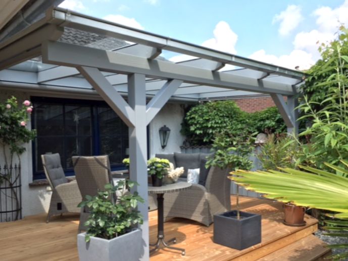 Eine Überdachung macht Ihre Terrasse zu einem beliebten Treffpunkt und schafft einen wunderbaren Übergang vom Haus in den Garten. Das A+W Carportwerk liefert Standardgrößen ebenso wie individuell ausgestattete Ausführungen. Optionale Abstellräume, zum Beispiel für Gartenmöbel und -geräte, lassen sich einfach integrieren. Ebenso einzelne Seitenwände bis zur kompletten Verkleidung mit Türen. So kann Ihr Terrassendach zu einem Wintergarten wachsen.
